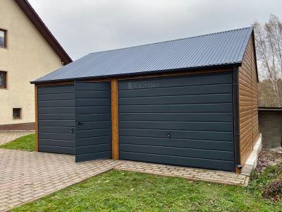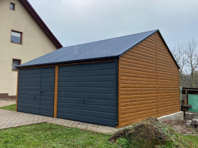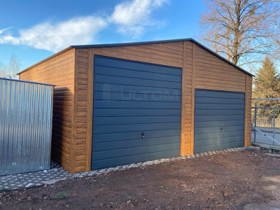 • Plechové garáže v imitaci dřeva